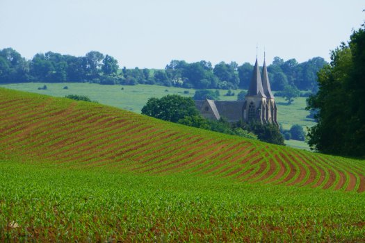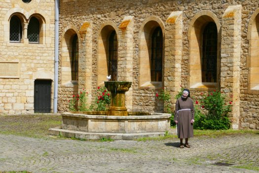 En ja, de ontmoetingen zijn zo leuk! Twee dagen terug zat ik in de caravan van een lief echtpaar bij wie ik mijn accu’s had afgegeven om op te laden. Of ik koffie wilde? Met handen en voeten legde ik uit niet zo goed te slapen op koffie. Ah Rosè dan, daar sliep vrouwlief goed op! Vervolgens een geanimeerd gesprek met handen voeten en mimiek. We kwamen er wel uit met elkaar. Zo kwam ik ook terecht bij Centre de Partage in Avioth. Een bijzondere. Eigenlijk alleen om een tampon te scoren (je weet inmiddels dat het niet om zo’n wit geval gaat?) ik zou namelijk naar de camping een kilometer of wat verderop … . Daar zat Udo, Belg en ook op de fiets naar Santiago. Volgens Udo kon ik hier ook mijn tentje wel opzetten en mee eten moest volgens hem ook wel lukken. Udo regelde het wel even want spreekt zowel Frans als Vlaams. En daar stond ik dan met mn tentje op een prachtig privé plekje en schoof ik aan aan tafel in een bont gezelschap. Dan was er nog Baraa, een Sirische jongeman die vanuit Duitsland, waar hij studeert, naar de Noordkaap in Noorwegen fietst. Met zijn fietstassen vol fotoapparatuur omdat hij onderweg foto’s maakt die hij weer verkoopt. Enthousiast zwaaiend stopte hij voor een praatje. Heerlijk zo ongedwongen!