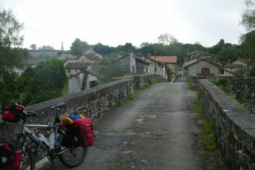 In deze rust en uitgestrektheid fiets ik tot St. Leonard de Noblat waar ik mijn tentje opzet op de camping municipal aan de rivier vlak bij de Pont de Noblat. Stilletjes ook hier maar mijn dagelijkse ritueeltje van zoeken naar een oplaadpunt voor mijn accu’s levert een geanimeerd gesprek op met een echtpaar uit Trento. Met camperbusje op doorreis. Over een zoon die liever vakantie houdt dan werkt (van het leven houdt dus ; ), de Italiaanse hogeschool voor ijsbereiders in Trento waar zoonlief ‘studeerde’ èn een tip op voor een goed ijsadresje in Gouda, de eigenaar is in opleiding geweest in Trento dus dat zit wel goed! Vòòr achten al staat meneer mij ’s ochtends op te wachten met een volle accu! Ik kan weer vooruit! Neejjjj gèèn accu voor de fiets! Al is dat wèl de vraag die steevast volgt als ik weer eens ergens boven kom na een stevige klim … ” le petit electrique?” En vervolgens onderzoekt men nieuwsgierig mijn frame waar de electrique dan wel verborgen moet zitten. Steevast is mijn antwoord dan “non, pas de electrique … le petit electrique c’est Moi!” Grappig, dat is nu een vraag die ik zo’n 30 jaar terug nooit kreeg op fietstrektocht!