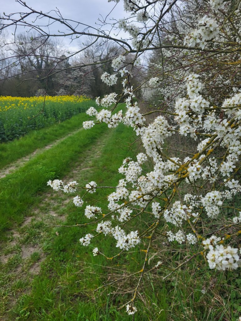 Onderweg heb ik mijn eerste ‘ren voor je rot’ ervaring als ik Saudoy nader. Het pad loopt langs een akker waar net gif (gewasbeschermingsmiddelen moet ik eigenlijk zeggen) gespoten wordt. Het drukt mij met de neus op de feiten. Dit idyllische landschap van glooiend groene akkers en uitbundig bloeiende Koolzaadvelden heeft een keerzijde, er wordt veel gespoten. Ik kies (biologische) eieren voor mijn geld en zoek een veilige weg Saudoy in.