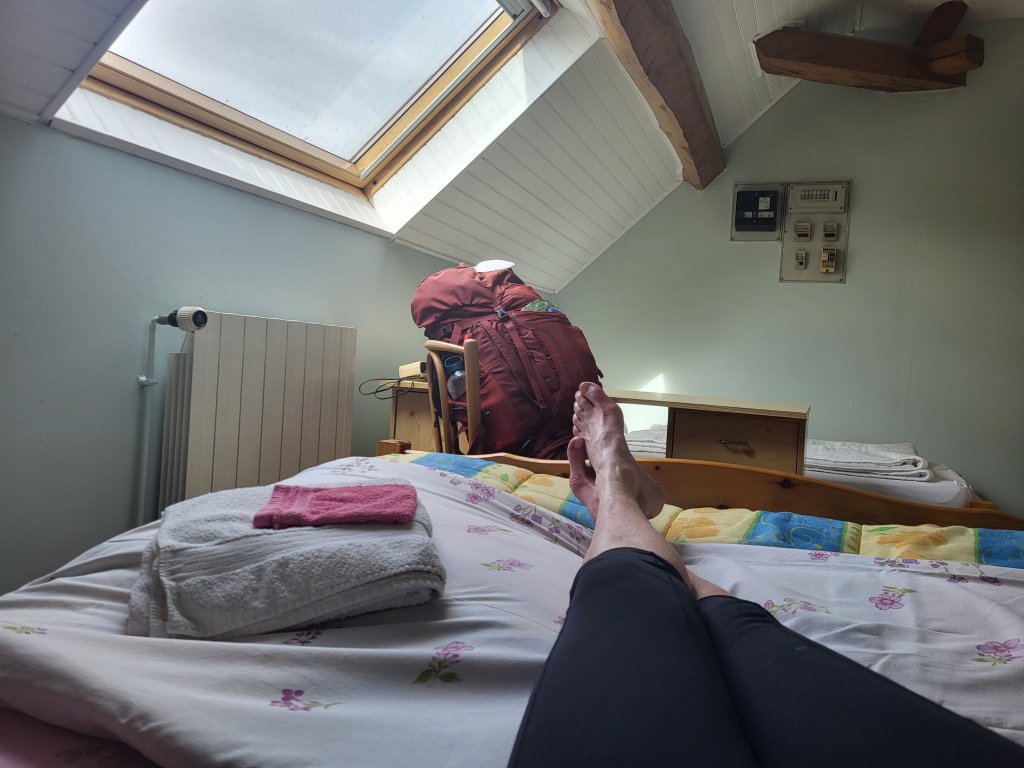 Niet veel later stap ik met wandelzin de camping af, direct de route op, vrolijk nagezwaaid door de beheerdster. Mijn ervaringen met de campings Municipal in Frankrijk zijn onverdeeld positief. Eenvoudig, functioneel, schoon, mooi gelegen en altijd een vriendelijke toegewijde bebeerder/ster.