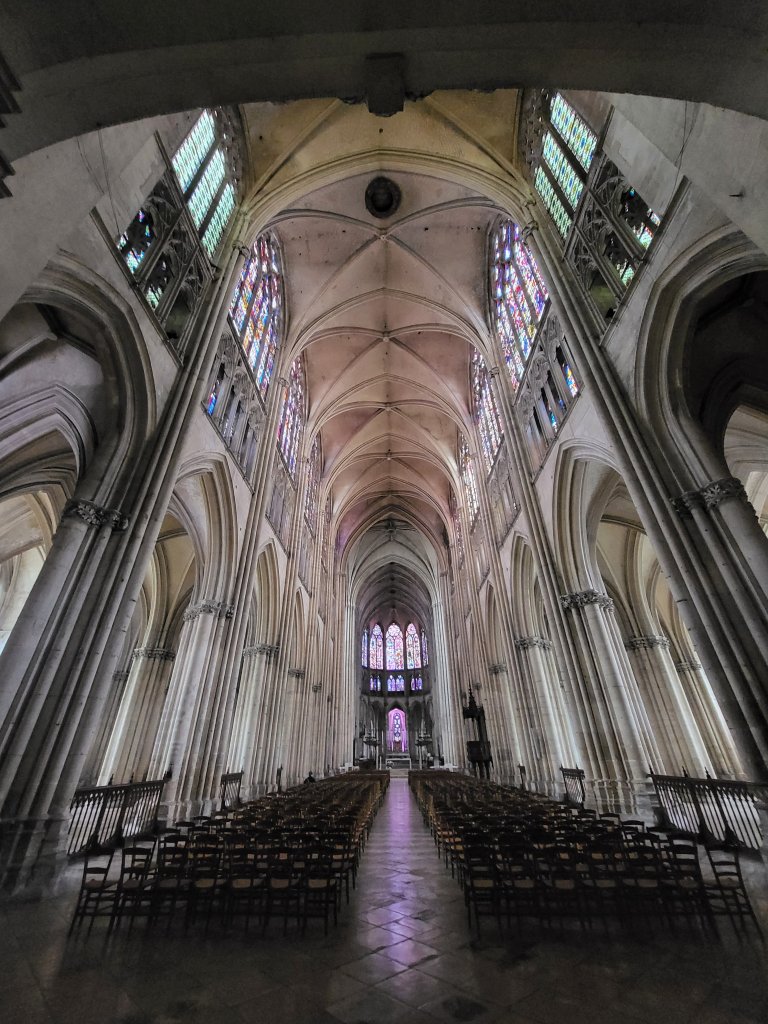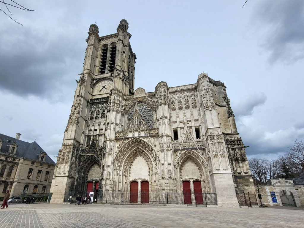 Voor laatste km’s Troyes in pak ik bij hoge uitzondering de bus. Om 5 u wordt ik opgehaald bij de Cathedraal door Daniël die ergens buiten het centrum woont. Ik heb nog net tijd om de Cathedraal te bezoeken voor een tampon, een kaarsje aan te steken en even te verstillen bij Maria. Mijn plan is morgenochtend eerst nog terug te komen. Vòòr ik de Cathedraal in stap spot ik Theo, die daar aan komt lopen mèt stok … natuurlijk, ook hij slaapt op hetzelfde adres. En zodra ik stipt om vijf uur de Cathedraal uit kom, staan daar òòk Marilene en Pascalle! Het wordt een gezellige maaltijd. Daniël, onze gastheer is druk met het geven van advies en tips over volgende overnachtingen en vertelt verhalen over de Camino’s die hij en zijn partner liepen. De partner van Daniël zorgt dat ieders was gedaan wordt en stelt ons gerust … geen angst voor delicate wandelkleding, ze heeft haar eigen pelgrimsprogramma. Ik kan rustig slapen.