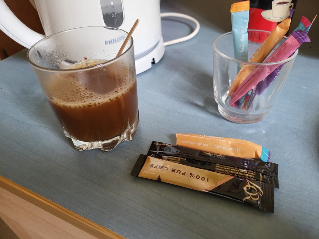 Als ik tegen het eind van het traject het bos uit kom op de heuvel boven Sommeval schijnt de zon en is het uitzicht prachtig. Er staat er een bankje op dè perfecte plek! Ik zit er zeker een uur vòòr ik op mijn gemak afdaal naar Sommeval, direct doorloop naar het gemeentehuis voor een tampon en info over de gemeente gite. Deze blijkt aan de rand van het dorp te staan, waar ik al voorbij gelopen ben. Ik heb deze kleine gite voor mij alleen. Er is een keukentje, toilet een heerlijk warme douche en verwarming. Heerlijk want het koelt buiten flink af! Èn oploskoffie … àhhh geen suiker!