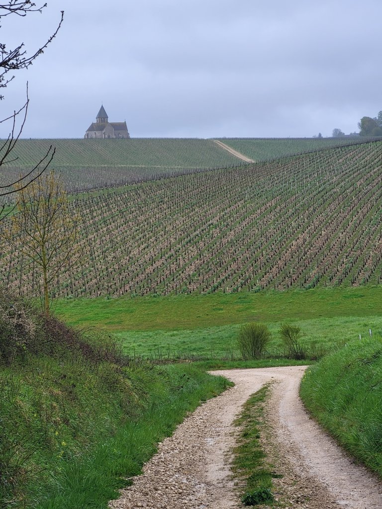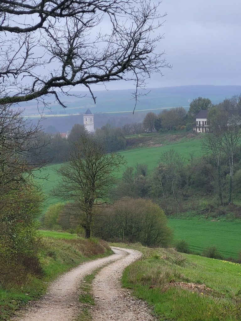 Ik stap al om 8 uur de deur uit. Theo en Sieb zijn al weg. Het aanbod van Theo om zijn regenhoes voor mijn rugzak te lenen heb ik stom genoeg afgeslagen. Hij gebruikt zelf een regencape die ook over de rugzak gaat. Ik kan mezelf wel voor de kop slaan! Er is veel regen voorspeld, kans verkeken! Ik besluit nog even het plaatselijke café in te stappen voor koffie en tot mijn grote vreugde tref ik Theo en Sieb! Ik betuig spijt en haal opgelucht adem als Theo zijn de knal oranje hoes tevoorschijn tovert. Het regent uiteindelijk zo’n beetje de hele dag. Het is ook pittig koud! Een droge warme lunchplek zit er vandaag niet in. Ik zoek van arremoe wat beschutting in een ondiepe nis waar een of ander nostalgisch brandweer geval in staat opgesteld en waar ik maar net tussen pas maar het is beter dan in de volle wind en regen mijn broodje naar binnen werken. Mijn hoop is gevestigd op een opwarmertje in het café in Cravant later op de dag. Maar deze sluit nèt als ik de straat in kom lopen de deur. Een les die ik al lang geleden heb geleerd onderweg in Frankrijk … laat je niet uit het veld slaan door wat er niet is en wees blij met wat zich wèl aandiend.