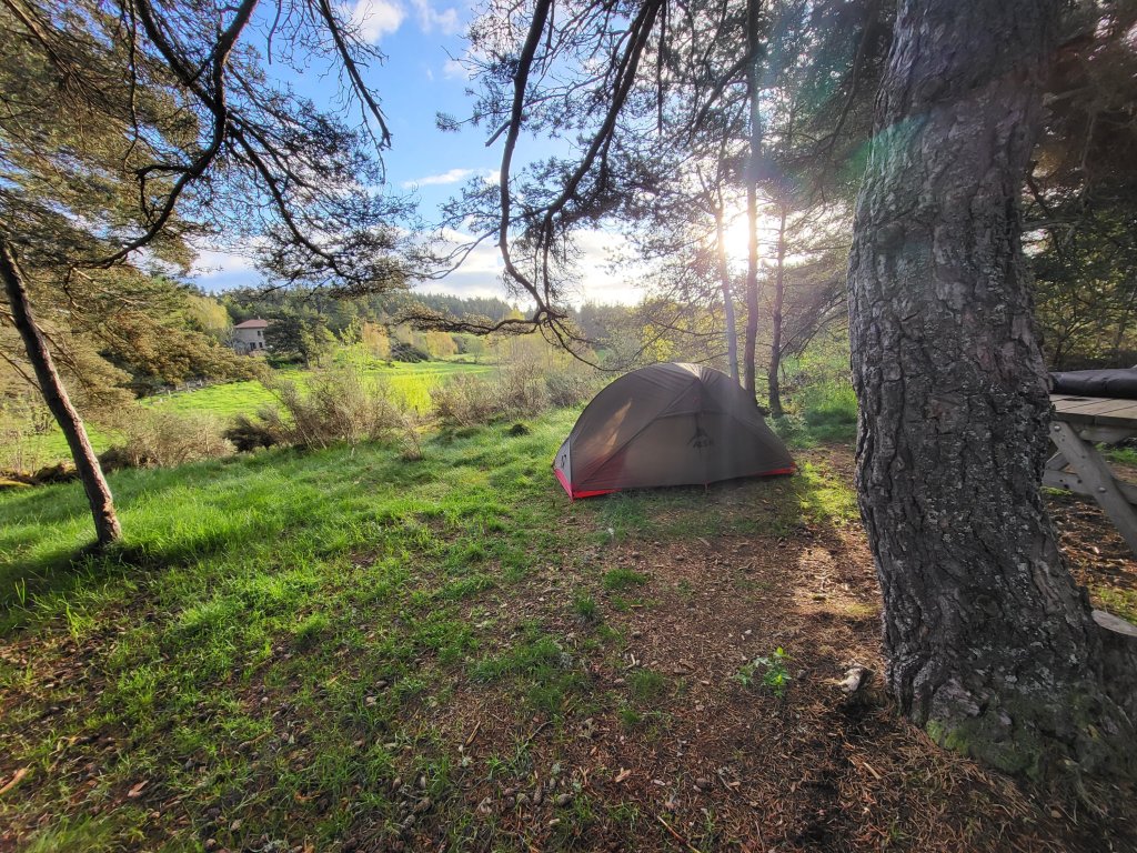 Ik stap Sauges, een grote etappeplaats voorbij en vindt een kilometer of 8 daarvoorbij een perfect plekje voor de tent. Droog, vlak, picknicktafel ernaast, kabbelend beekje op de achtergrond …