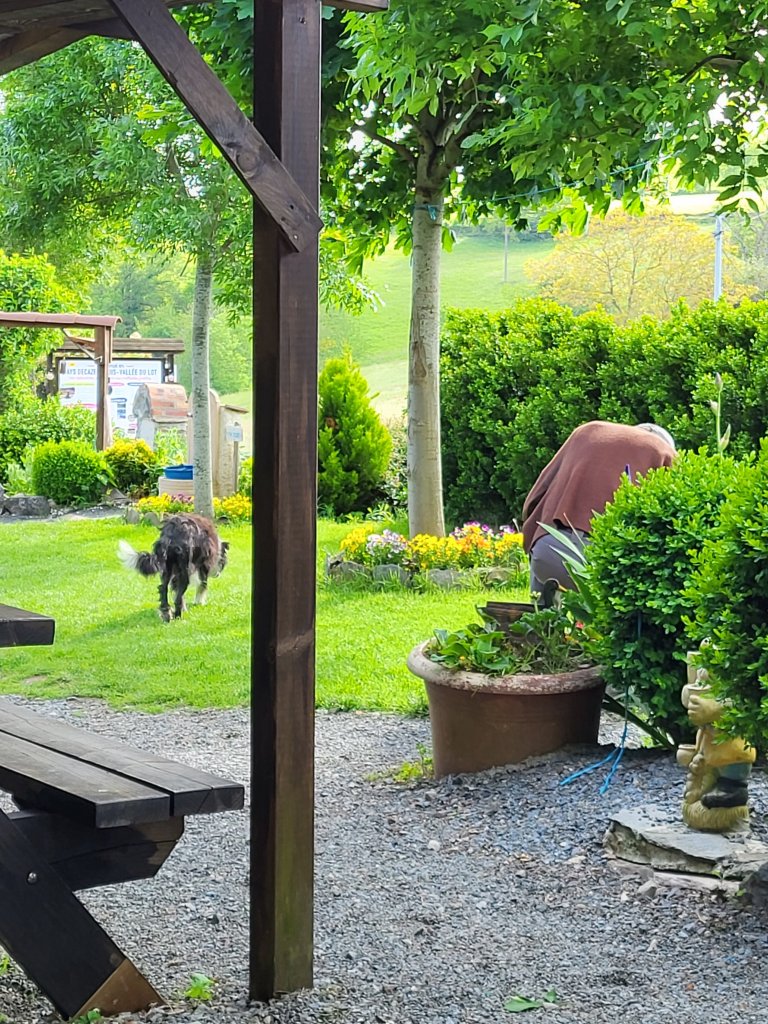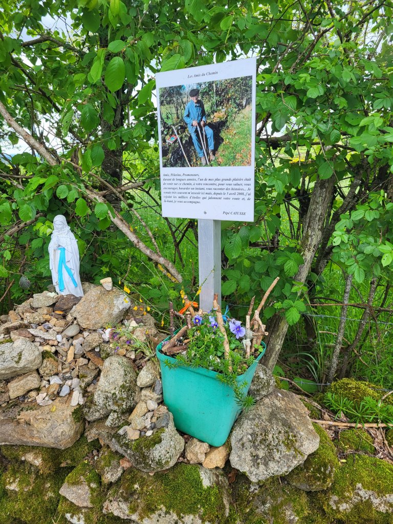 Een van de vele rustplaatsen voor Pelgrims. Meneer op hoge leeftijd kwam even wat éénjarigen planten. Ik zag mijn vader vòòr mij, precies die toewijding … ❤️