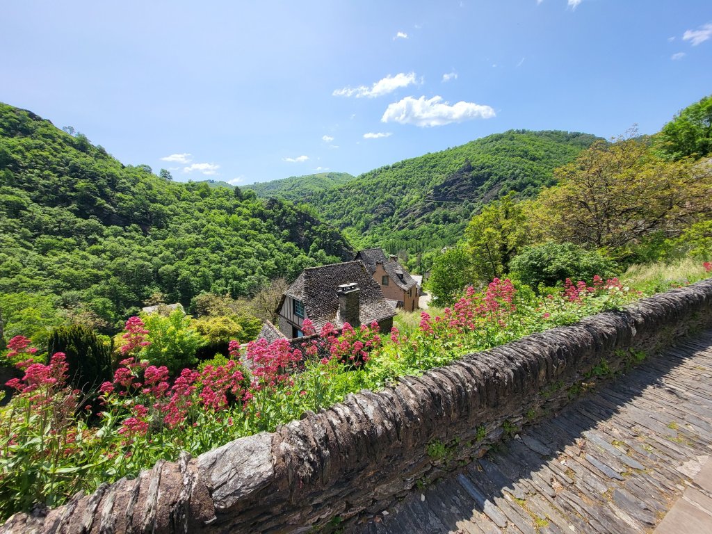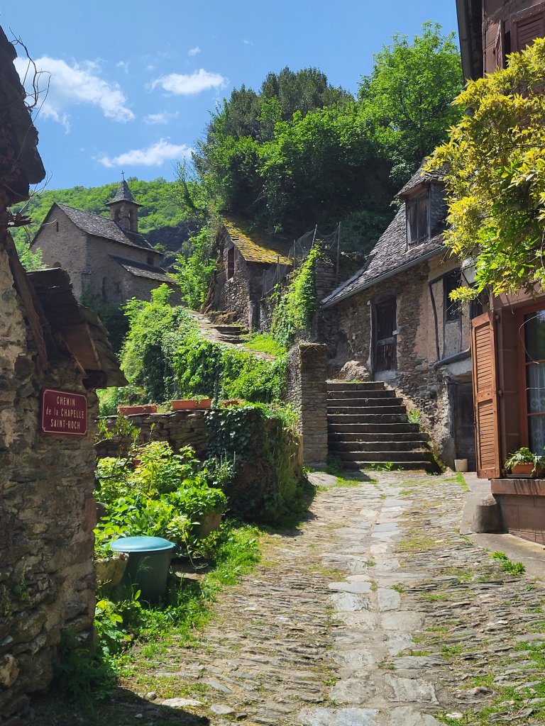 Ik verlaat Estaing, een mooi historisch plaatsje aan de Lot. De grote rivier slingert zich om het dorp heen waardoor het aan drie kanten aan water grenst. Een strategische plek, er torent dan ook een markant kasteel boven het stadje uit.