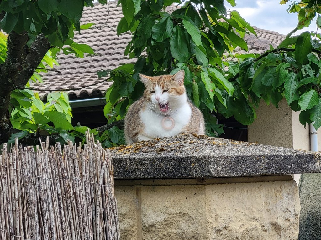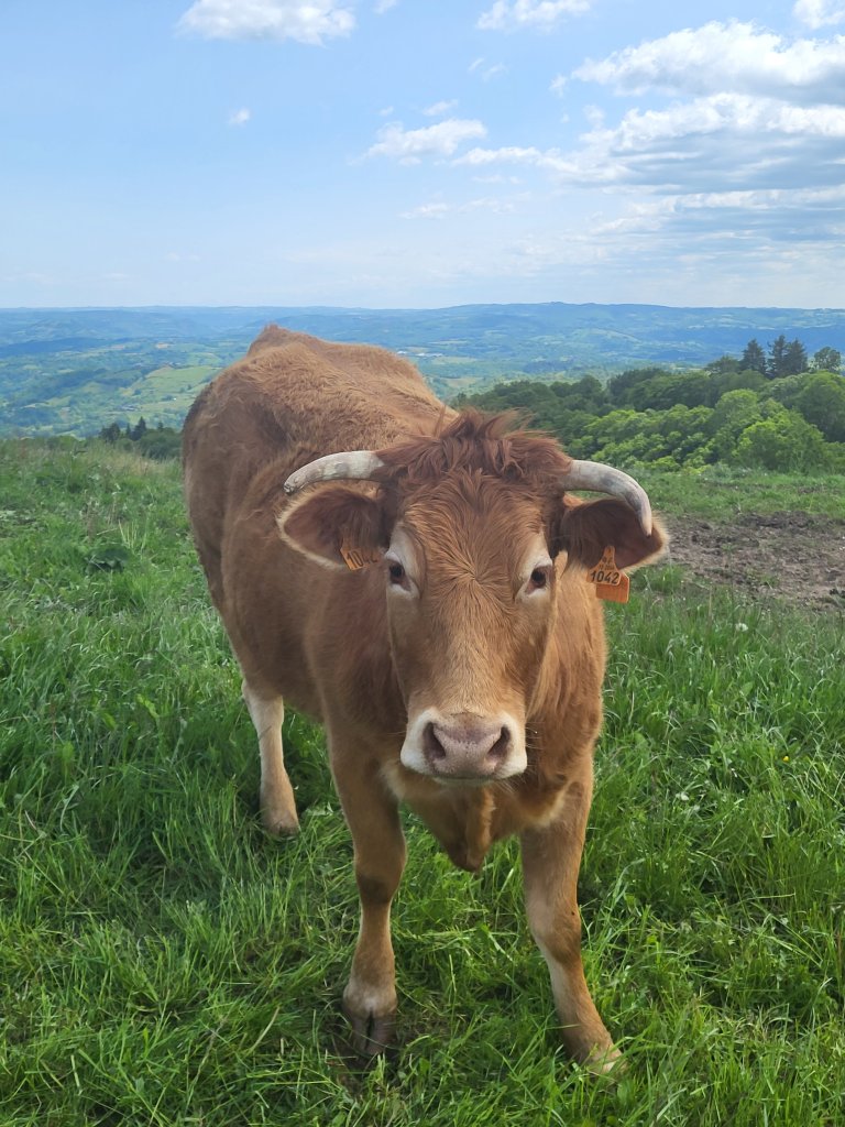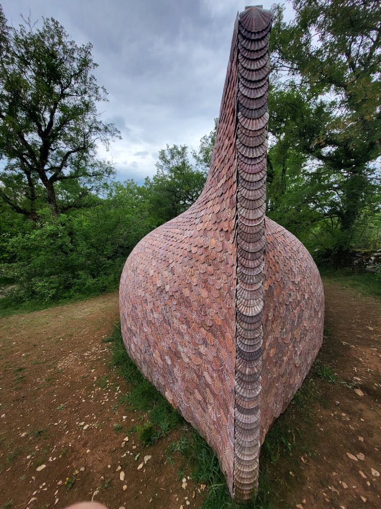 In Conques heb ik niet echt boodschappen voor de avond kunnen doen. Ik weet nog niet waar ik vanavond zal neerstrijken dus als ik een klein winkeltje vindt in Nouilhac grijp ik mijn kans. Er liggen eitjes in de vitrine en ik twijfel of ze rauw zijn of gekookt. Ik vraag er naar maar begrijp het antwoordt niet. De kordate madame doorbreekt onze taalbarriëre letterlijk en figuurlijk en knalt het eitje op toonbank … zie je? Gekookt dus!  Dàt noem ik nog eens slagvaardig communiceren! Eitje!!!