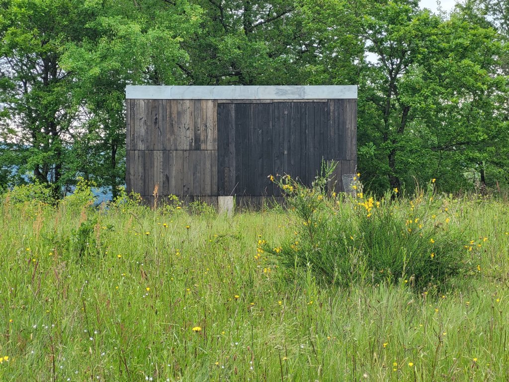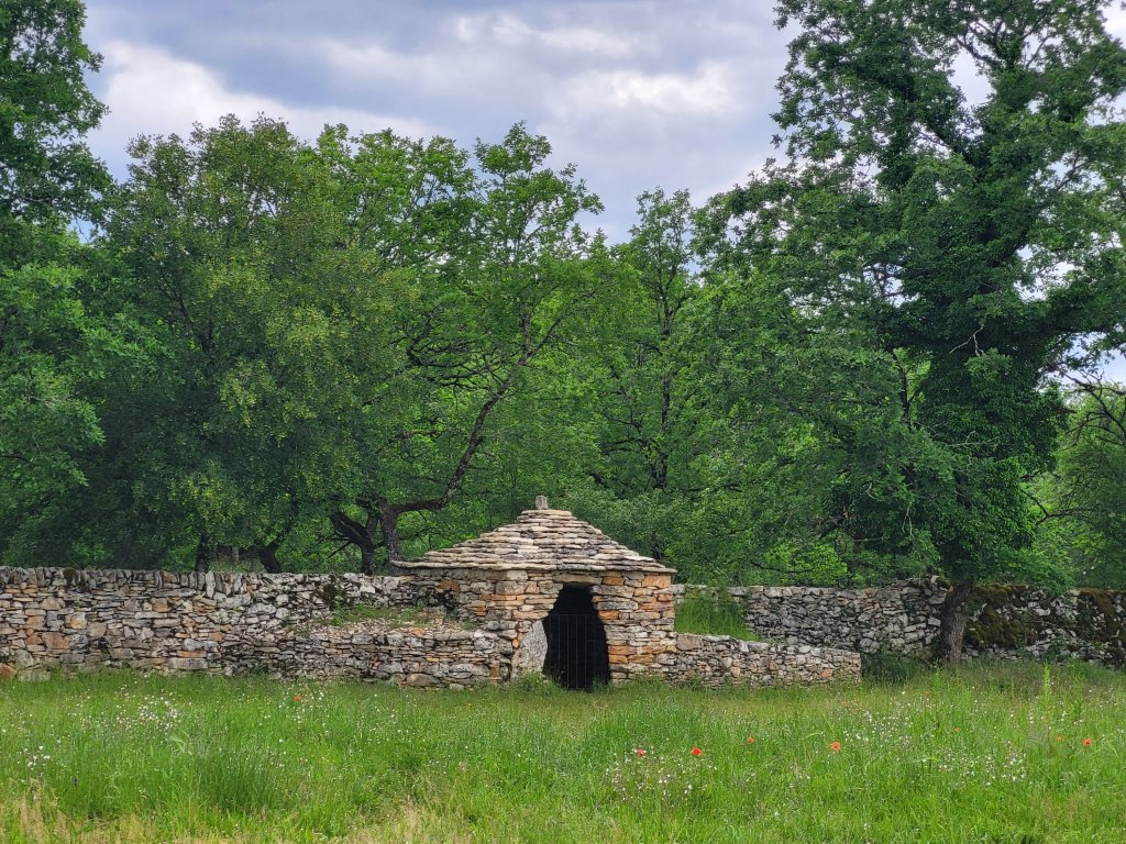 Na een korte pauze bij bien et Toit in Montredon met verse Jus en zelfgebakken coockie pauzeer uitgebreid en lui nabij Quirande, in een weiland vol wilde bloemen. In de beschutting van een stenen huisje is het er nèt aangenaam genoeg om wat te rusten en mijn broodje te eten. Een enkele Pelgrim passeert. Vandaag is de eerste dag sinds zo’n anderhalve week dat ik weer lekker ontspannen wandel. Ik ben weer helemaal fit en de scheenbeen blessure is over!