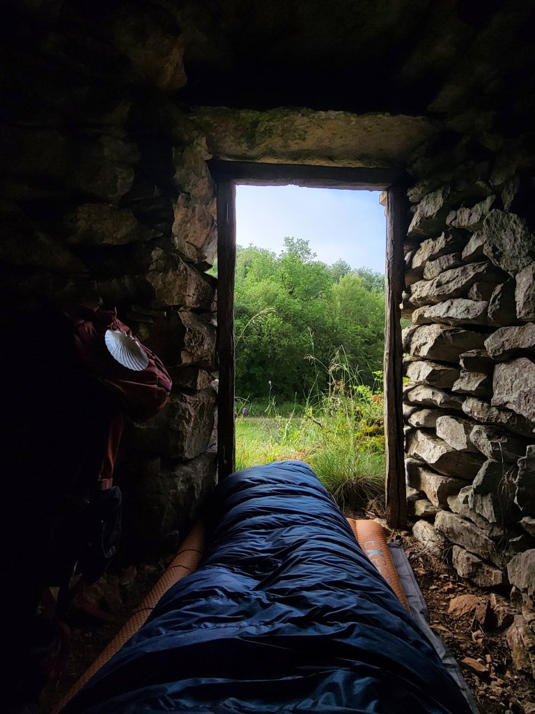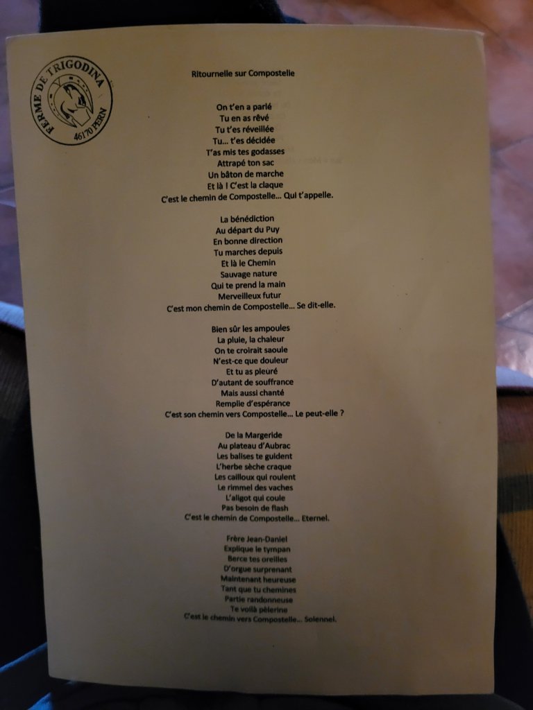 Ik kan terecht in de Gite Trigodinia en krijg er een bed toebedeeld in het houten chaletje naast de gite, perfect! Remy, de eigenaar speelt ’s avonds na de maaltijd piano en sluit af met een prachtig Pelgrimslied! Het zijn zo de bijzondere en onverwachte momenten!