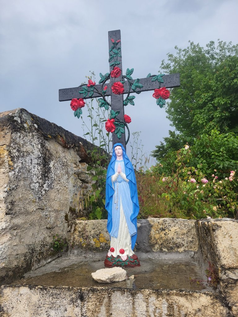Onderweg tref ik een houten kruis dat mij wel héél bekend voorkomt. Het is het kruis dat de jongeman die ik een paar dagen terug sprak op de rustplaats. Hij vertelde toen dat hij zijn antwoord had gevonden op de vraag of hij het seminarie in zou gaan of niet. Zou hij met de knoop die hij heeft doorgehakt nu het kruis niet meer hoeven dragen òf heeft hij zich bedacht? Ik kan hem in ieder geval geen ongelijk geven dat hij deze last nu achter heeft gelaten. Dat kruis staat hier prima zo…
