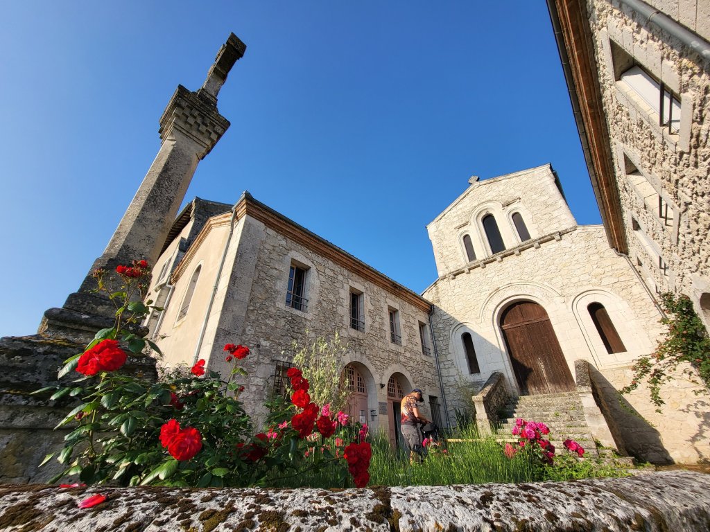 De gite communale in Moissac is een prachtige locatie gevestigd in een voormalig klooster. De eetzaal zit bommetjevol als ik binnenkom voor de maaltijd. Naast de losse Pelgrims is er ook een groep van 18. Sophie, Yorick en nog wat ‘bekenden’ tref ik er ook. Het is een gezellige boel maar ook een prikkelrijk gebeuren. De rustige koele binnentuin is na de maaltijd een verademing! Ik maak nog even een praatje met een Nederlandse fietser die dezelfde route fietst als ik in 2018 en trek mij dan terug in de safe space van mijn bedje.