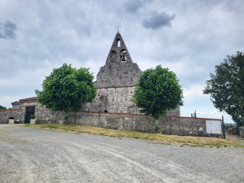 Ik loop uiteindelijk verder door dan eigenlijk mijn plan was en maak het mijzelf daarmee wat lastig omdat ik alweer in de bebouwde kom van Lauzerte aanbeland, wat het vinden van een plekje voor de tent lastig maakt. Ik probeer het bij de gite die ik passeer. Die is vol en mijn tent kan ik er ook niet kwijt. Ik wordt verwezen naar Erick Ensemble Chambre d’hôtes aan de rand van Lauzerte. Als ik aanbel, doet Erick open, loopt met me mee en wijst mij een plekje achter het huis waar ik mijn tentje kan zetten. Even verderop is een openbaar toilet dat ik kan gebruiken. Nee, hij wil niet dat ik betaal; “its free.”